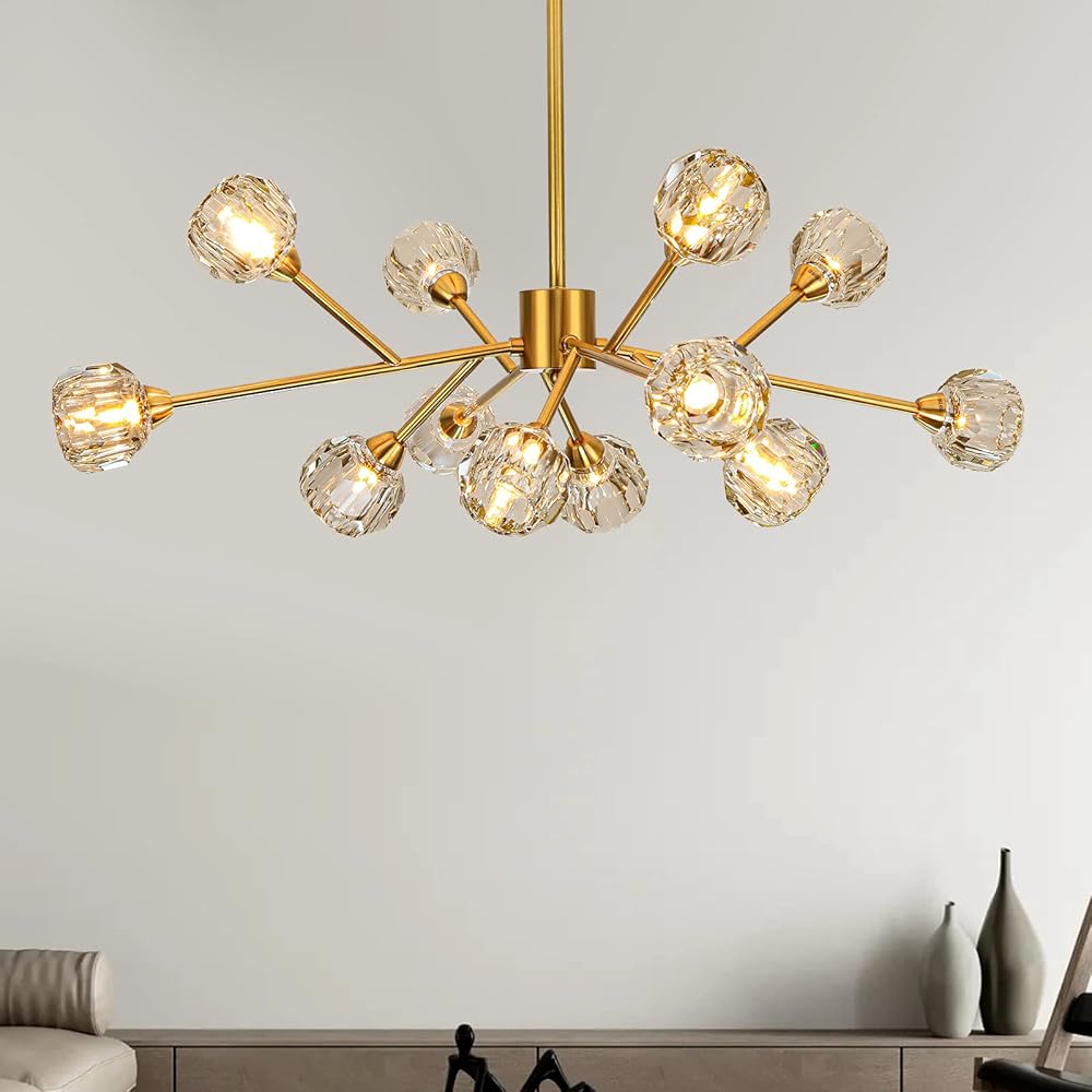 Sputnik Chandeliers Modern Crystal Pendant Lighting Gold Chandelier 12 Lights Mid Century Ceiling Light Fixtures for Dining Room Kitchen Island Living Room Bedroom Bar