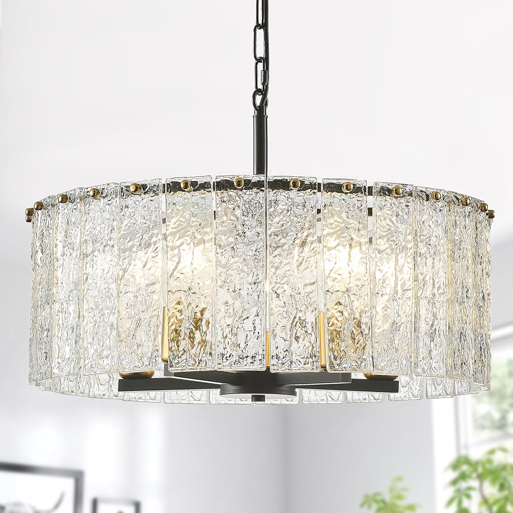 Modern Chandeliers for Dining Room, 5-Light Black Luxury Water Ripple Glass Chandelier Round Lighting for Dining Room Kitchen Living Room Bedroom Bar Table