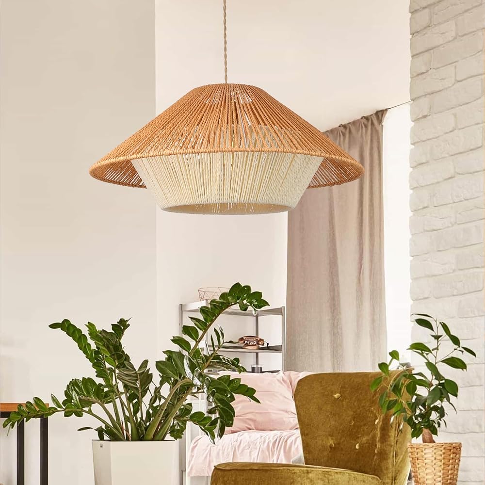 Rattan Pendant Light Creative Wicker Lamp Fixtures Coastal Chandelier Shade for Kitchen Island Bedroom Restaurant Living Room, 19.68''x8.66''
