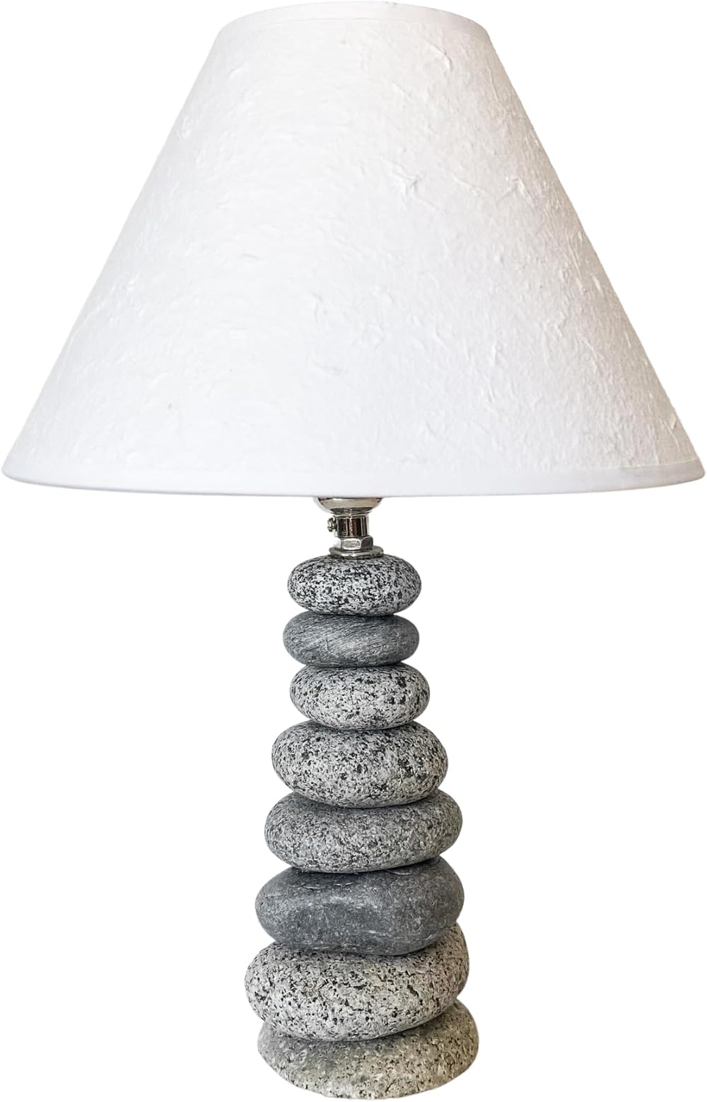 Mini Coastal Lamp - Handcrafted Nautical Bedside Lamp with Natural Beach Stones - Coastal Decor Lighting for Beach House or Coastal-Themed Accent Lamp - Unique Home Decor with Handmade Paper Shade