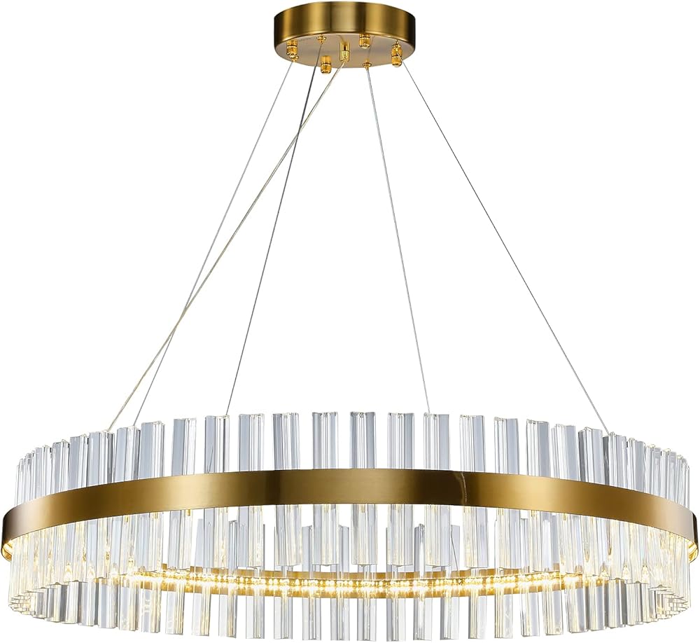 WABON Modern Crystal Chandelier, Round Crystal Pendant Light, LED Hanging Lighting Fixture Adjustable Height for Dining Room, Kitchen Island, Bedroom Living Room Dia 31.49 inch