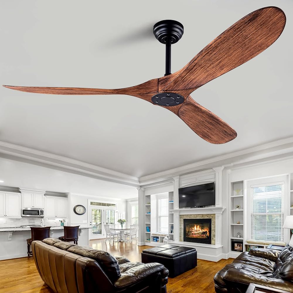 60" Ceiling Fan with Remote Control No Lights,Modern Reversible DC Motor Indoor Outdoor 3 Blades Ceiling Fans for Patio Bedroom Living Room(Black+Dark Walnut)