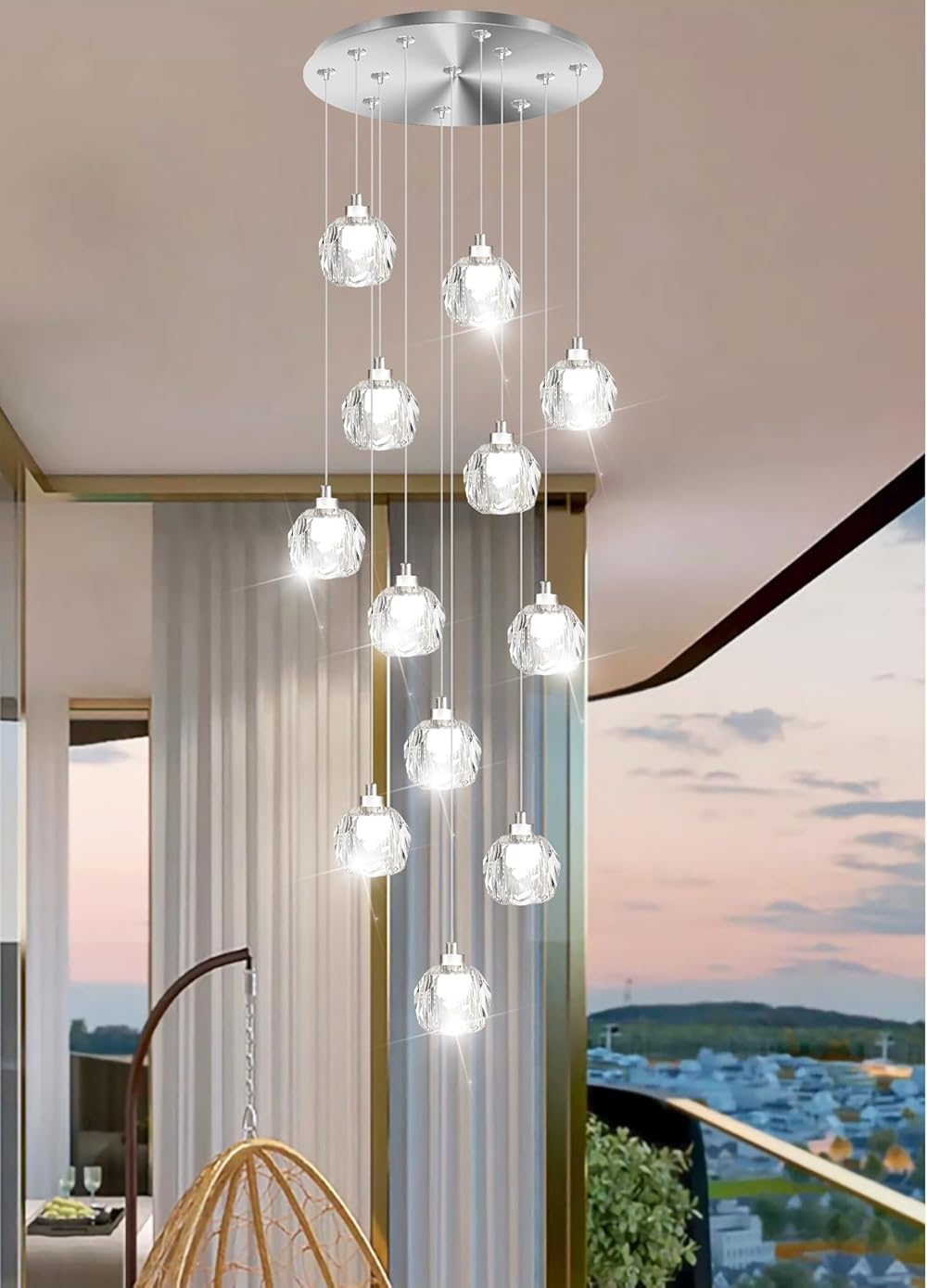 H 10ft Modern Crystal Ball Chandelier 12-Light Pendant Chandeliers for Foyer Entrance Crystal Chandeliers Dimmable Fixture High Ceiling Staircase Pendant Chandeliers