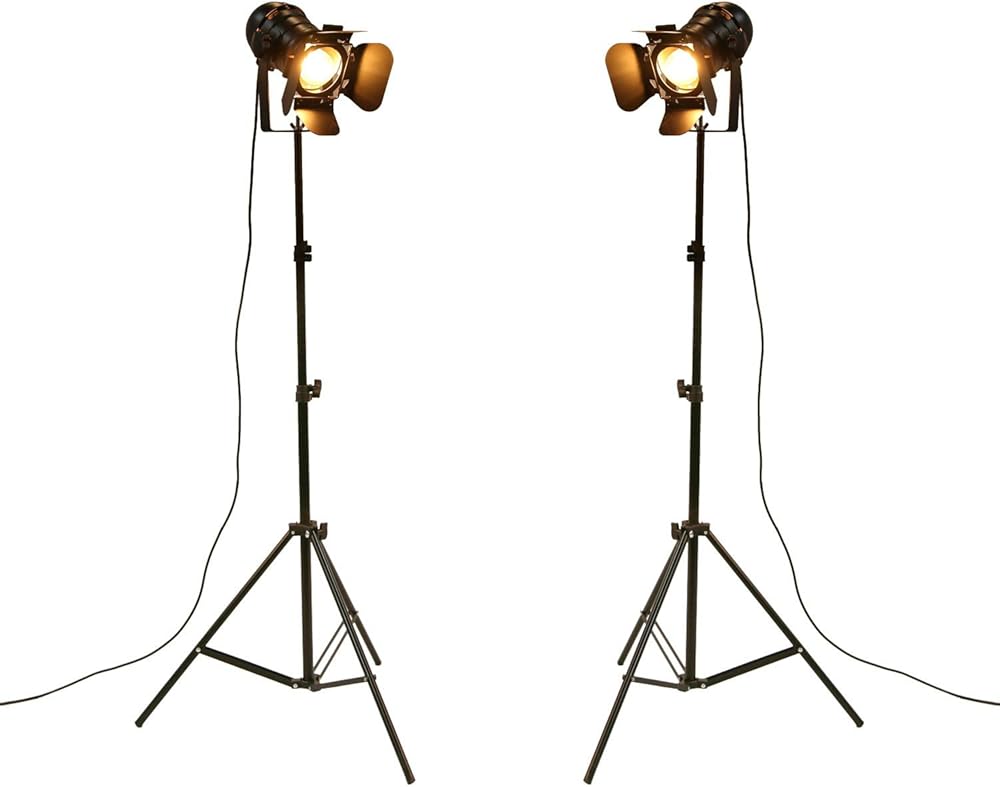 Vintage Industrial Black Retro Tripod Adjustable Floor lamp Parking Light, 5 Meter Cable with Foot Switch Parking Light Tripod gooseneck for Living Room Bedroom Office bar Lighting (Pack of 2)