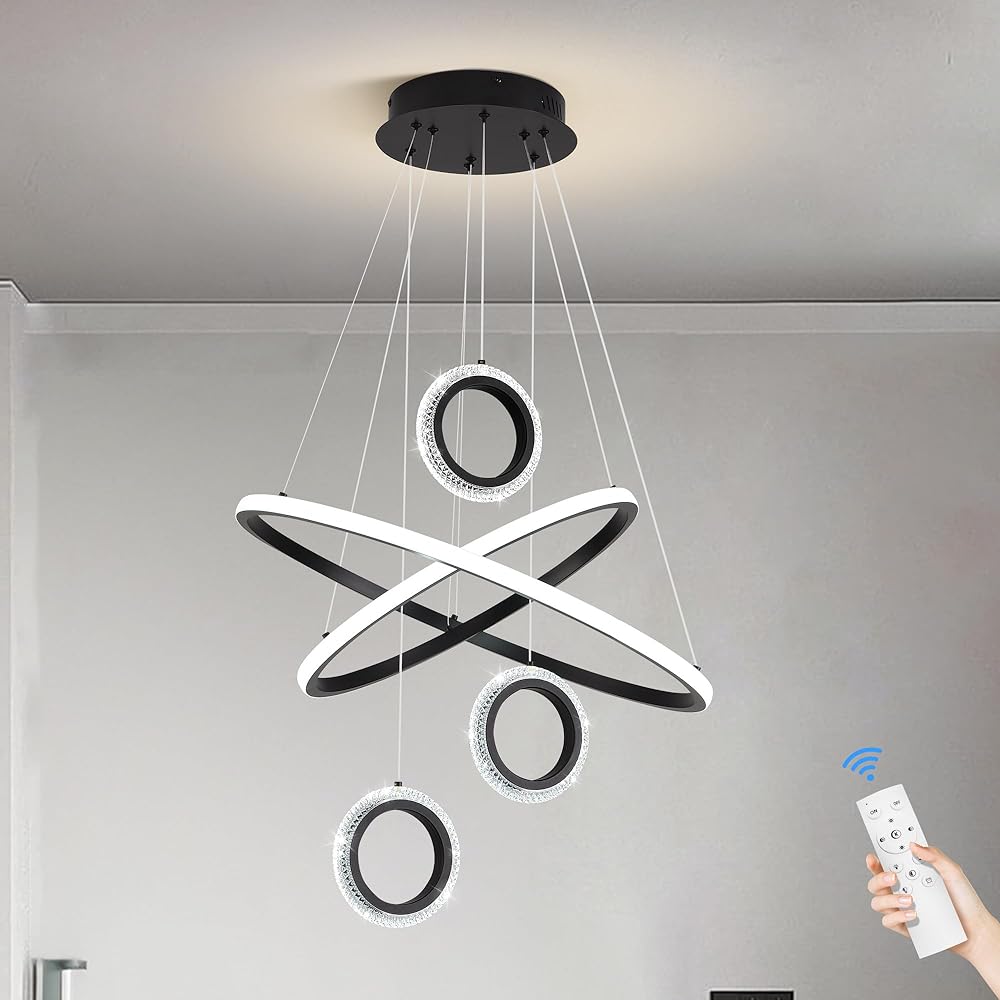Modern Chandelier Modern LED Chandelier with Remote Dimmable Adjustable Hanging LED Chandelier 5 Rings Chandelier for Living Room Foyer Staircase Entrance Ceiling Light Fixtures