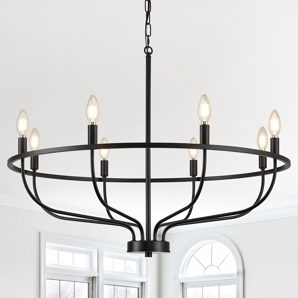 8 Light Black Modern Farmhouse Chandelier for Dining Room Light Fixture Over Table,Matte Round Candle Pendant Chandeliers for High Ceilings Entryway Foyer Living Room Kitchen Bedroom