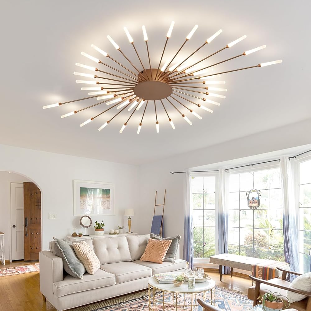 Modern LED Ceiling Light,42-Light Heads Flower Shape Ceiling Lights,Living Room Light Fixtures Ceiling,Flush Mount Chandelier,Metal Acrylic Ceiling Lamps for Bedroom,Dining Room(Gold)
