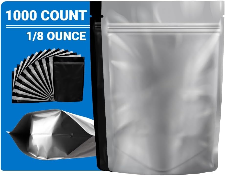 Mylar Bags Smell Proof 1/8 Ounce Black/Clear - 1000 Count 5.25" X 3.75" 6mill Thickness Mylar Bags For Food Storage - Resealable Bags - Smell Proof Bags - Dispensary Packaging