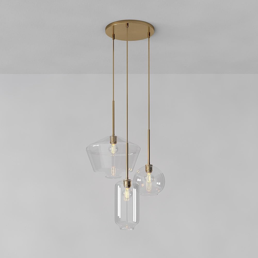 3-Light Multi Glass Shade Chandelier - Clear (Brass)