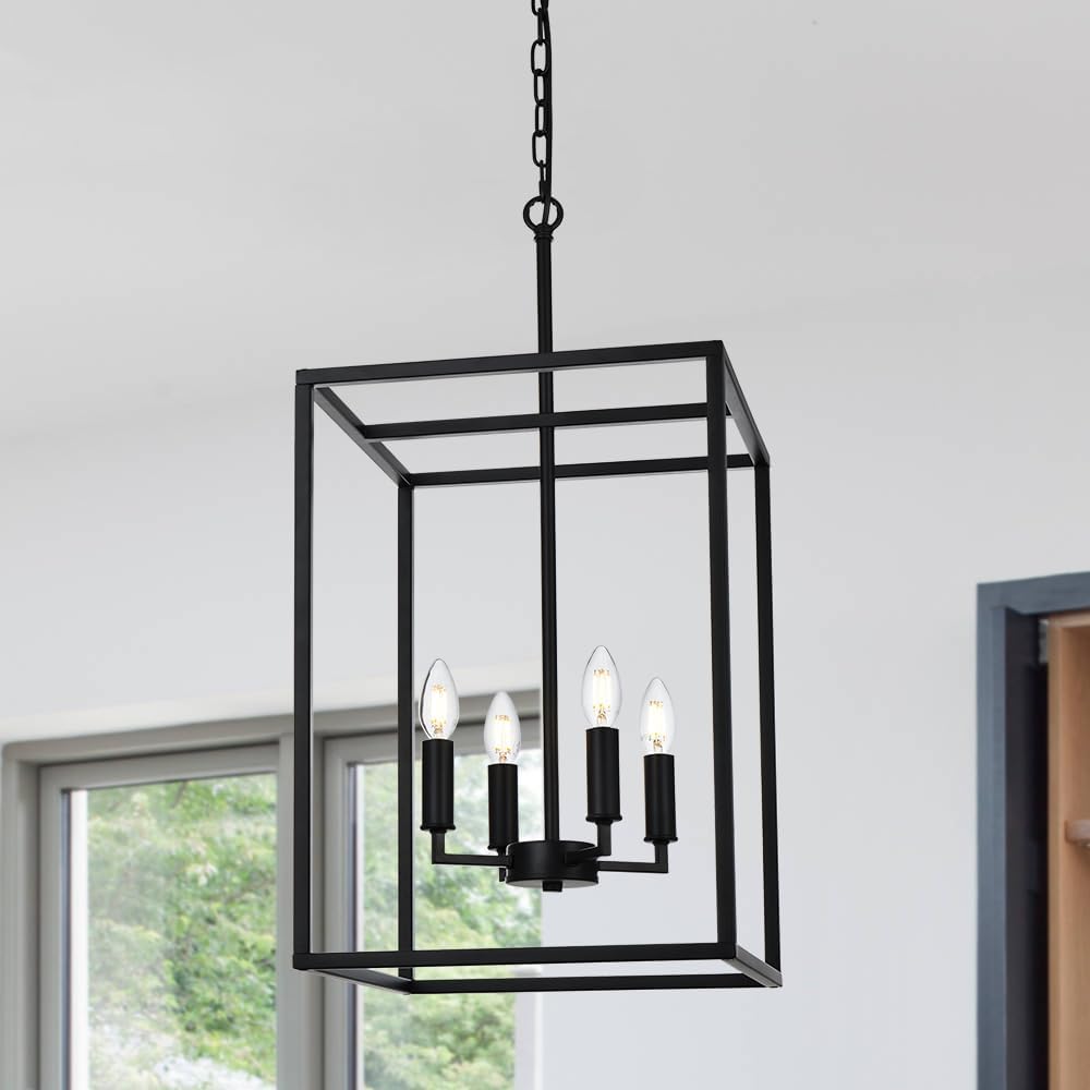 4-Light Black Farmhouse Cage Chandelier, Farmhouse Pendant Ceiling Light for Kitchen Island Dining Room, E12 Bulb Base