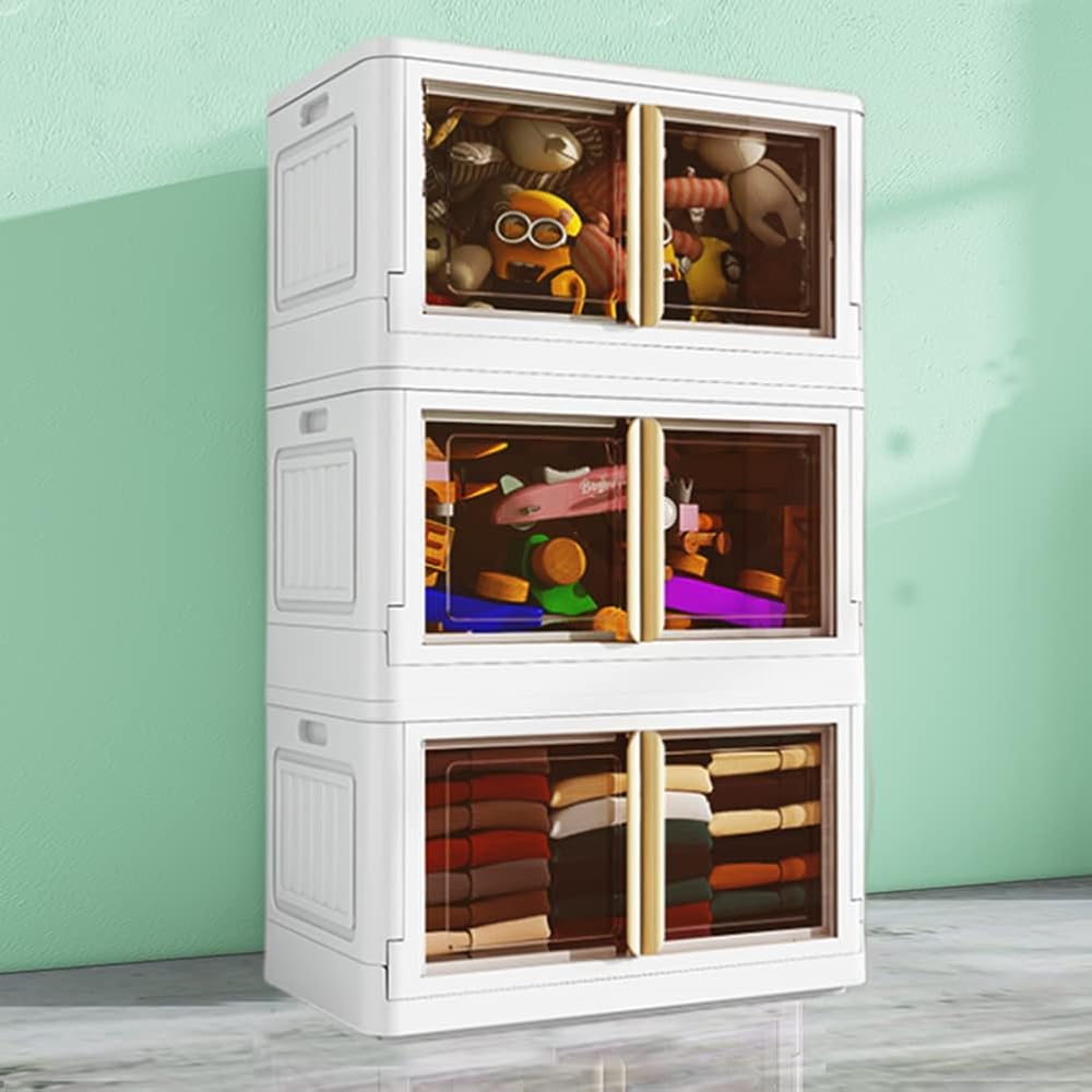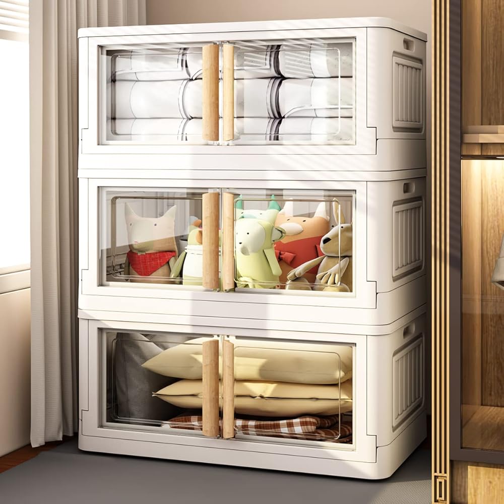 Storage Bins with Lids,78 Quart Plastic Bins with Lids,Large Closet Organizers, 3 Packs Collapsible Storage Bins with Wheels,Double Door Stackable Bins for Clothes,Home