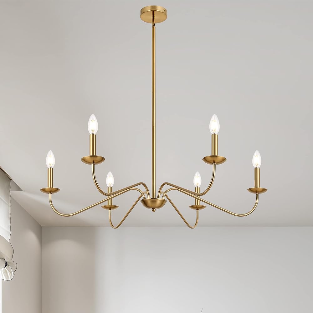 Jonsi Gold Chandeliers Light Fixture, 6 Lights 35" Brushed Brass Chandelier for Dining Room, Sloped Ceiling,Modern Dining Room Light Fixtures Over Table