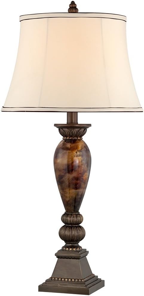 kathy ireland Mulholland Traditional Vintage Table Lamp 33" Tall Aged Bronze Golden Faux Marble Off White Bell Shade for Living Room Bedroom House Bedside Nightstand Home Office Entryway