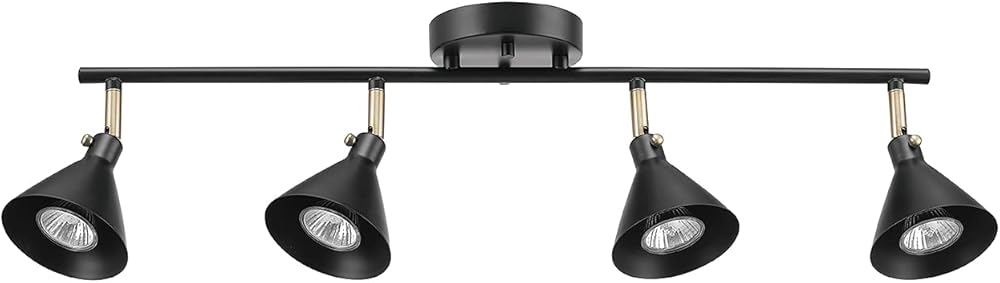 57228 Tristan 4-Light Track Lighting, Matte Black, Matte Brass Accents