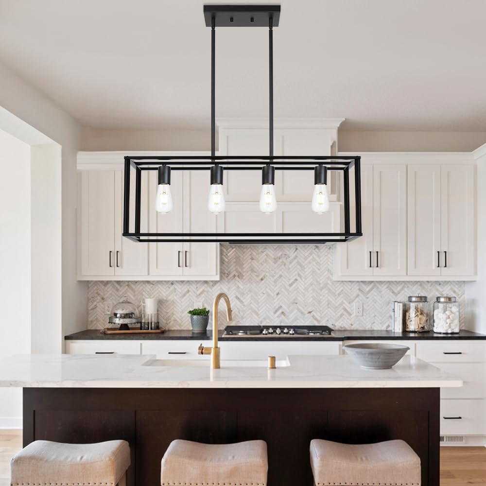 Farmhouse Kitchen Island Lighting,4 Light Dining Room Light Fixture Modern Pendant Lighting Black Linear Chandelier for Dining Room Kitchen Bar Pool Table Adjustable Height
