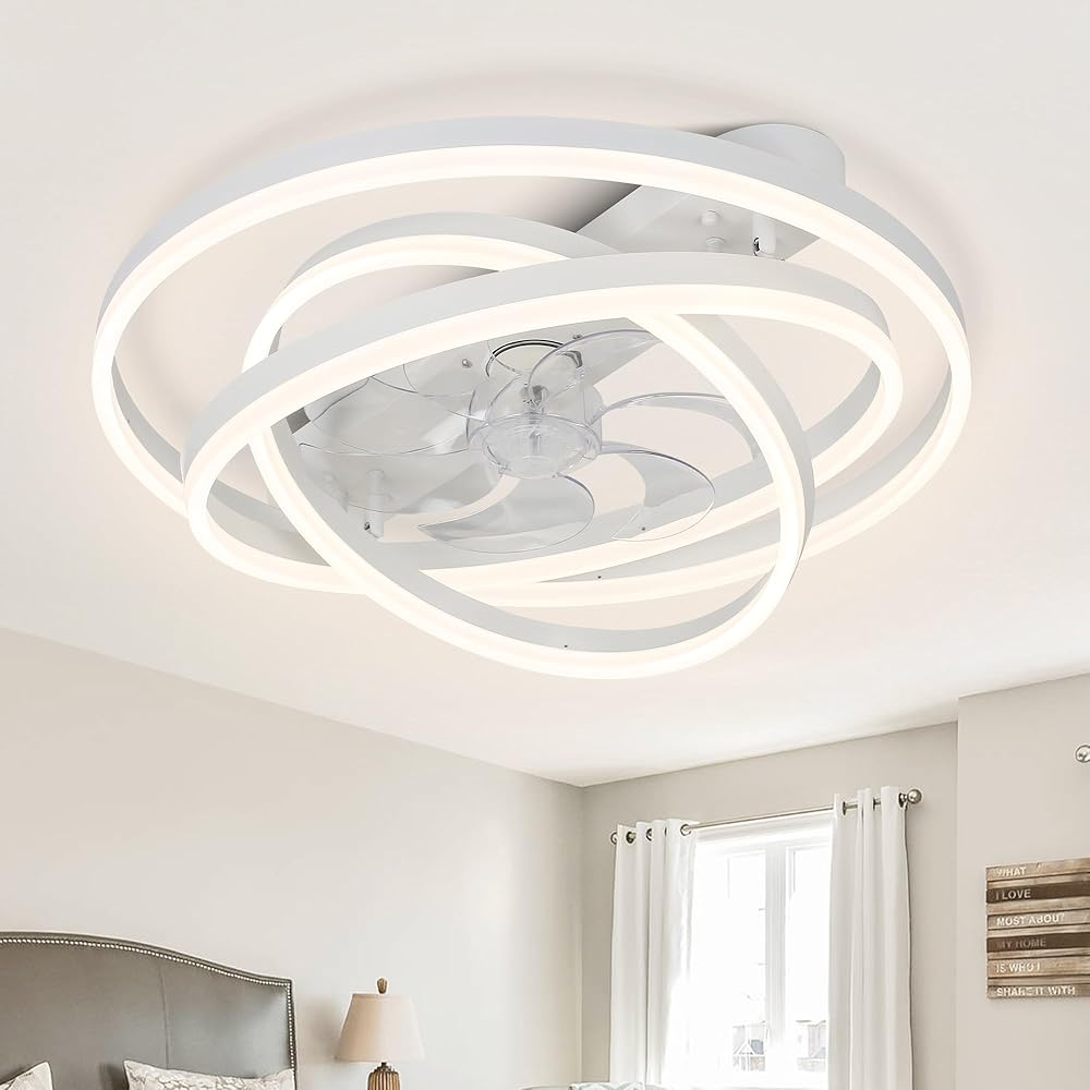 Ceiling Fans with Lights, Low Profile Ceiling Fan with Light, White 24" Ceiling Fans with Lights Flush Mount, Modern Ceiling Fans with Lights for Bedroom