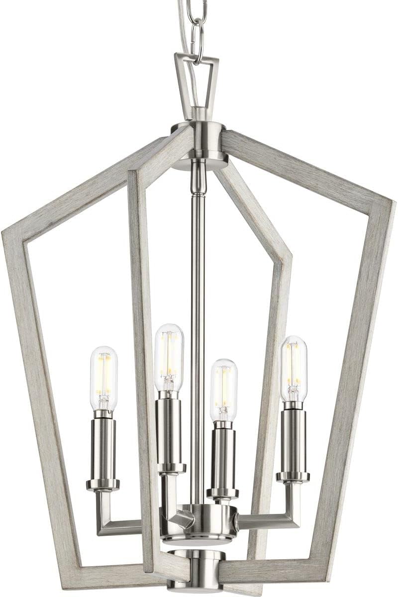Galloway P500377-009 Collection 4-Light Modern Farmhouse Foyer Light Brushed Nickel with Grey Washed Oak Accents