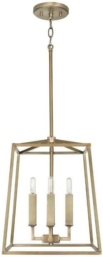 537641AD Thea Lantern Foyer Pendant, 4-Light 240 Total Watts, 15" H x 12" W, Aged Brass