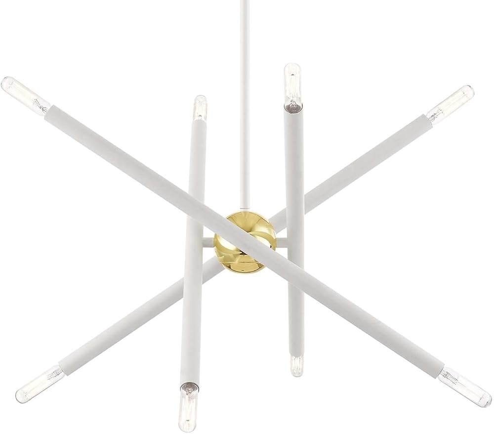 Lighting 8 Light White Chandelier,White W/Polished Brass Accents