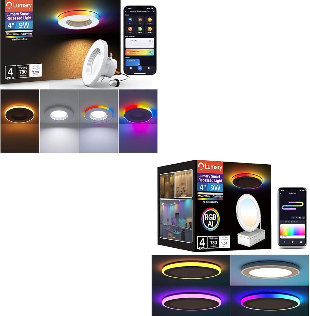 RGBAI Smart Recessed Lighting 4 Inch with Gradient Accent Light and Night Light Smart Recessed Lighting Retrofit 4 Inch with Dual Control