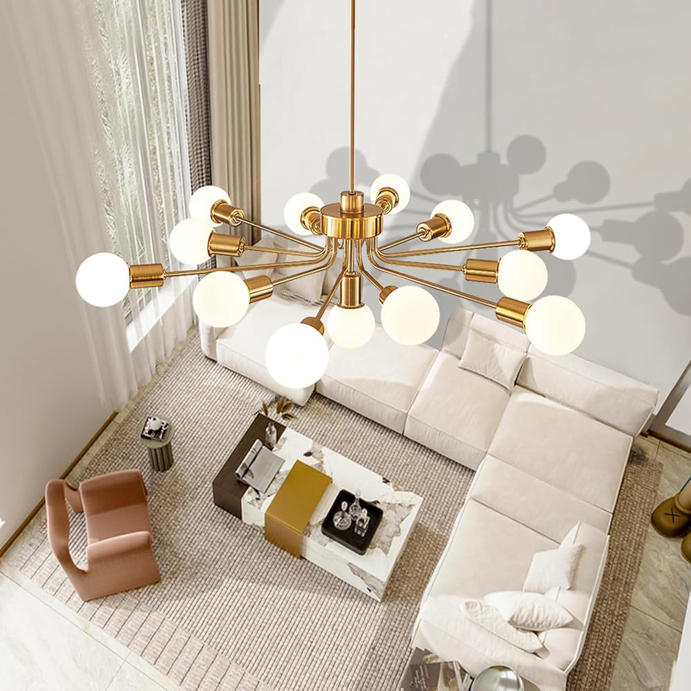 13 lights Gold Chandelier,Vintage chandelier,mid century chandeliers,modern chandeliers for dining room,Living room Bedroom Large chandeliers for high ceilings, island