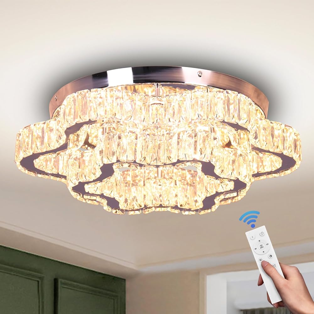 Finktonglan Modern Crystal Chandelier LED Flush Mount 2-Tiers Ceiling Chandelier Light Fixture for Living Room Bedroom (Dimmable)