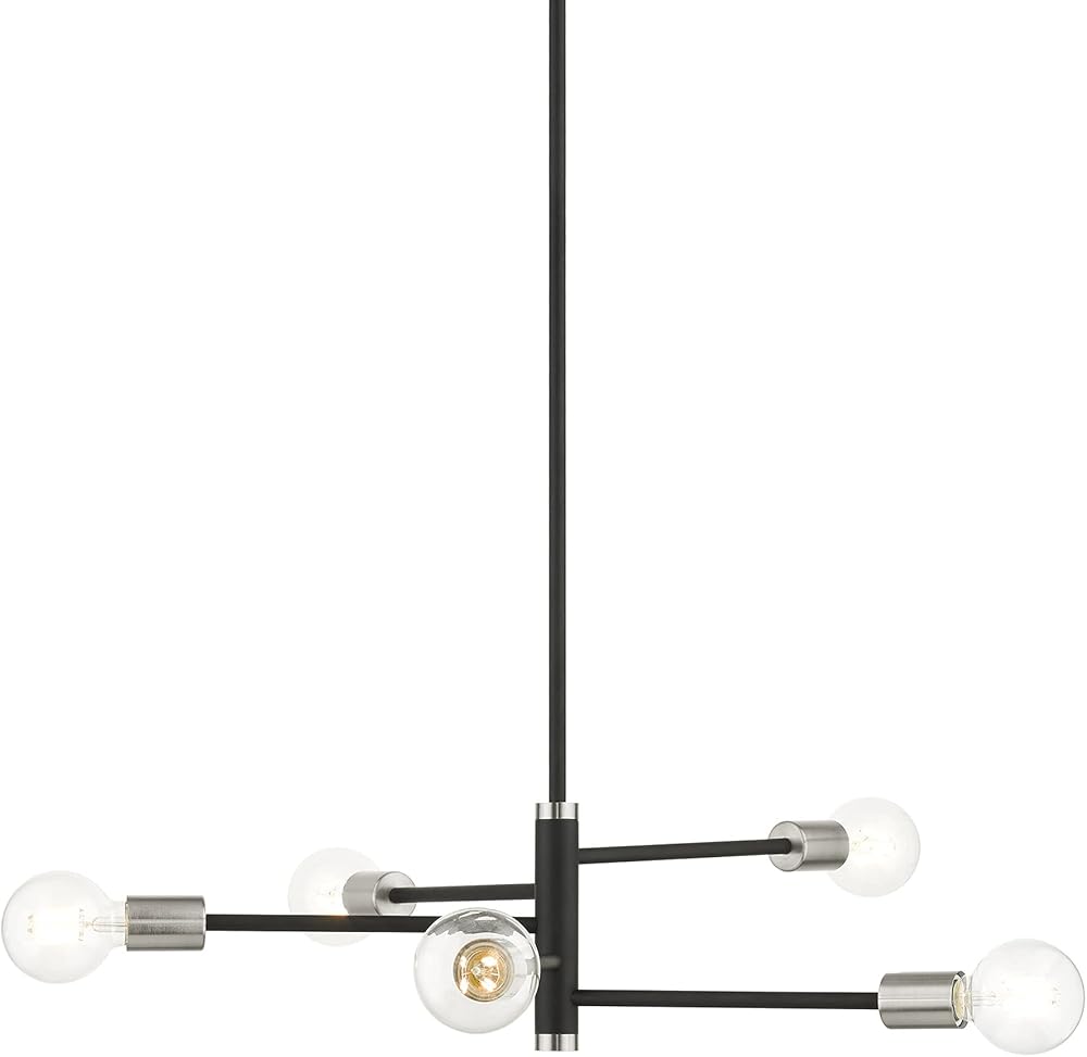 6-Light Modern Farmhouse Black Chandeliers for Entryway, Geometric Pendant Lights Kitchen Island, Hanging Industrial Metal Chandelier for Stairway Foyer Hallway Dining Room