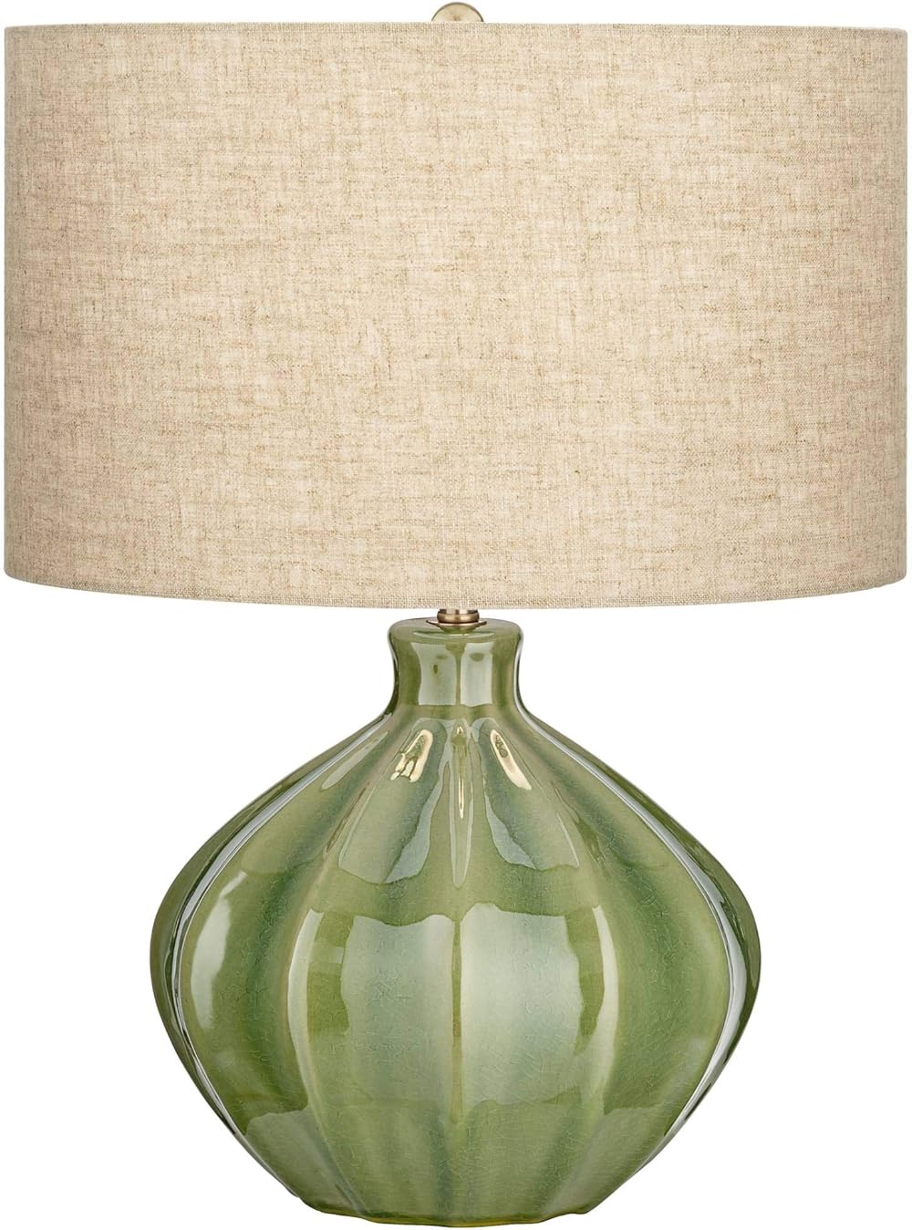 360 Lighting Gordy Modern Country Cottage Table Lamp with USB Charging Port 20.5" High Green Ribbed Ceramic Oatmeal Fabric Drum Shade for Living Room Desk Bedroom Bedside (Color May Vary)
