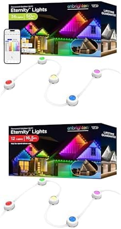 Bundle of Enbrighten Eternity Permanent Outdoor Lights, 50ft with 36 RGBWIC LEDs, Smart Eave Lights, Endless Light Colors, Daily and Accent Lighting, IP67 Waterproof + Lit Extension