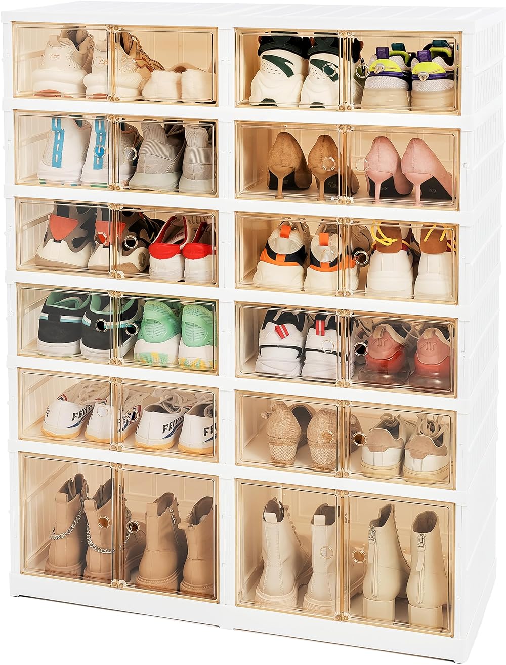 Shoe Rack Organizer for Closet 6 Tier Plastic Foldable Shoe Cabinet with Clear Door 24Pairs Sturdy Easy Assembly Large Storage Cabinet