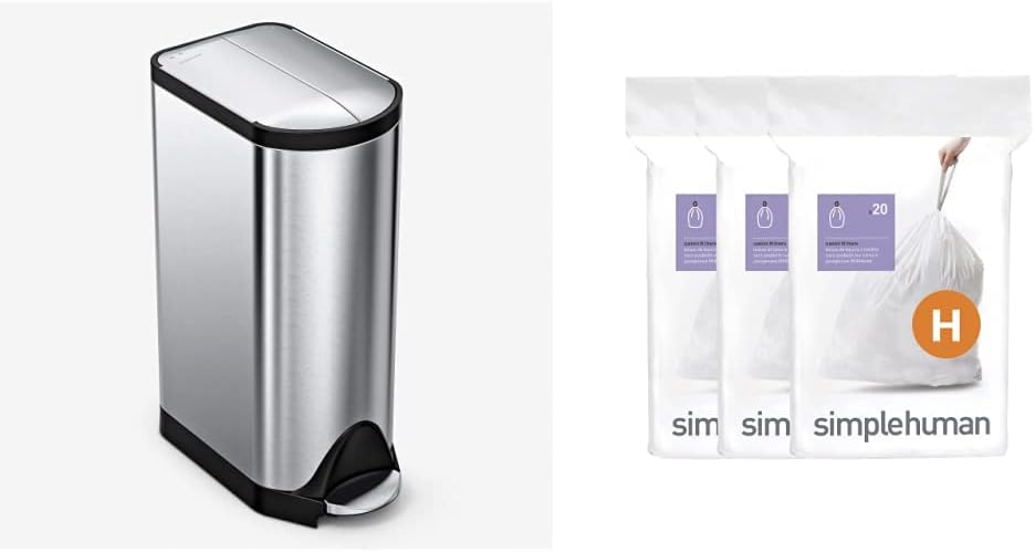 simplehuman 30 litre butterfly step can fingerprint-proof brushed stainless steel + code H 60 pack liners