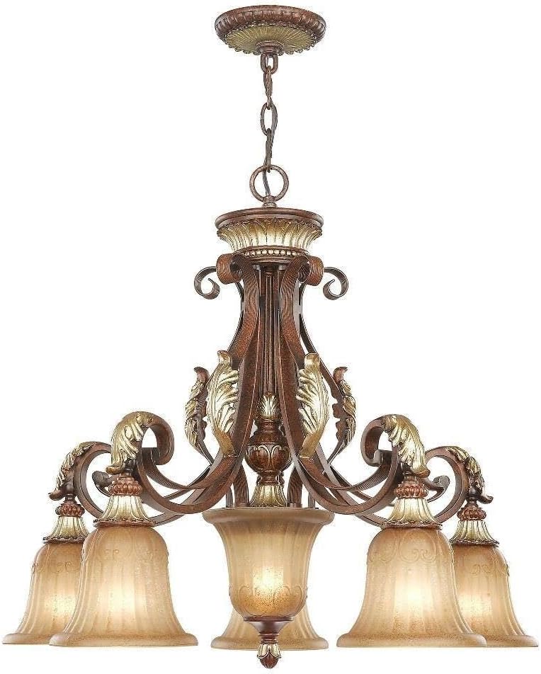 8575-63 Villa Verona 5 Light Verona Bronze Finish Chandelier with Aged Gold Leaf Accents and Rustic Art Glass