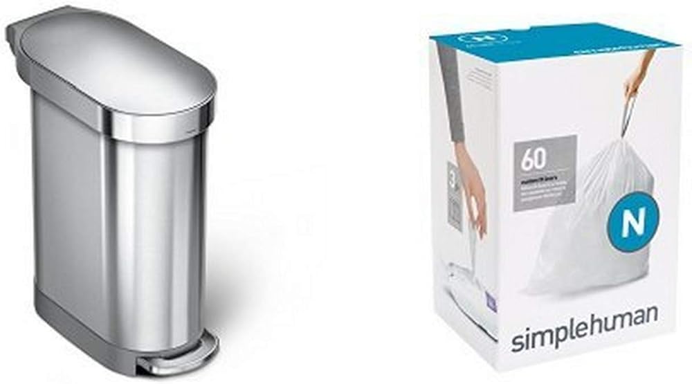 simplehuman 45 litre slim step can brushed stainless steel + code N 60 pack liners