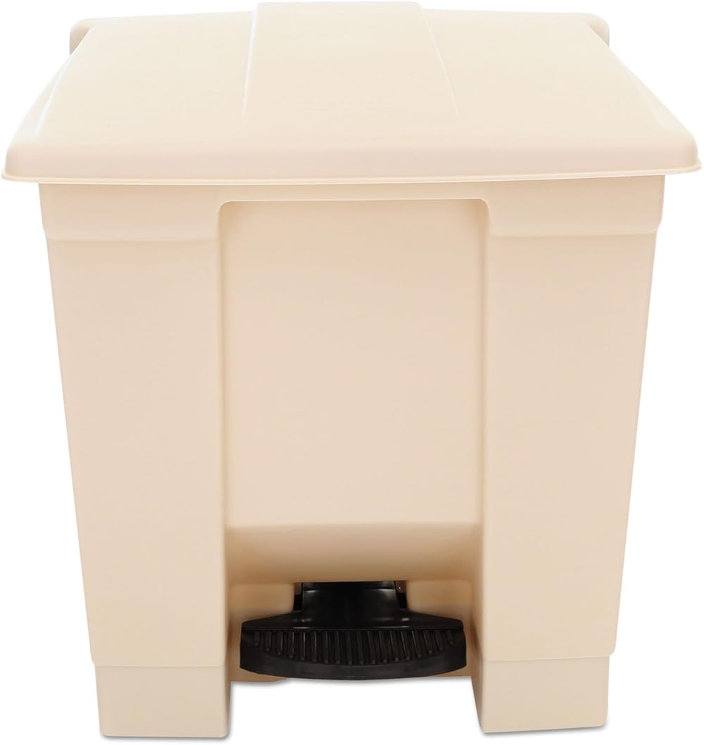 Rubbermaid Commercial Step Waste Container, 17.1" x 15.8" x 16.3", Beige