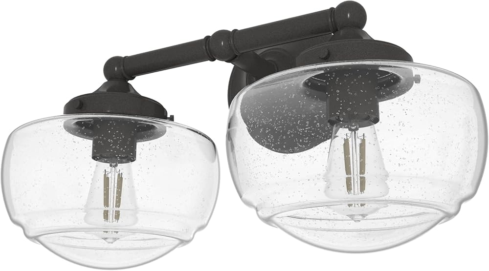 Hunter - Saddle Creek 2-light Noble Bronze, Medium Size Vanity Light, Dimmable, Schoolhouse Style, for Bedrooms, Kitchens, Foyers, Bathrooms - 19459