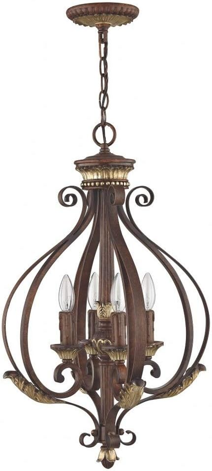 8556-63 Villa Verona 4 Light Verona Bronze Finish Foyer Chandelier with Aged Gold Leaf Accents and Rustic Art Glass