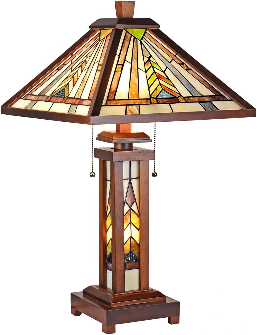 Capulina Tiffany Table Lamp 3-Light 15X15X26 Inches Mission Brown Style Stained Glass Wood Base Desk Lamp with Night Light Decor for Home Office Living Room Bedroom