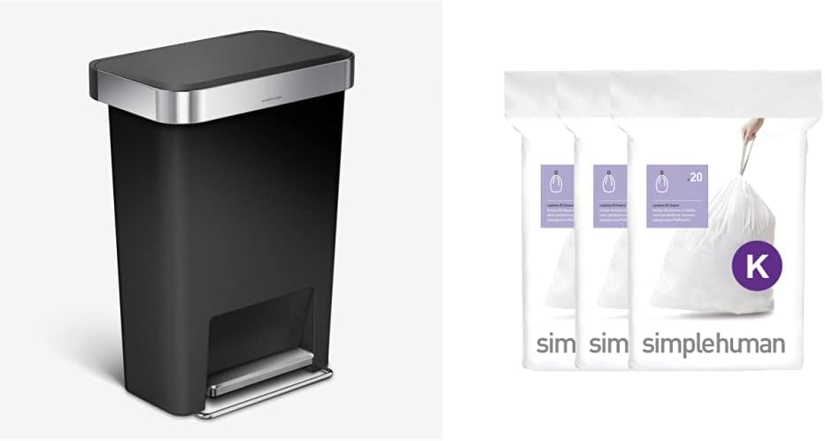 simplehuman 45 litre rectangular step can black plastic + code K 60 pack liners