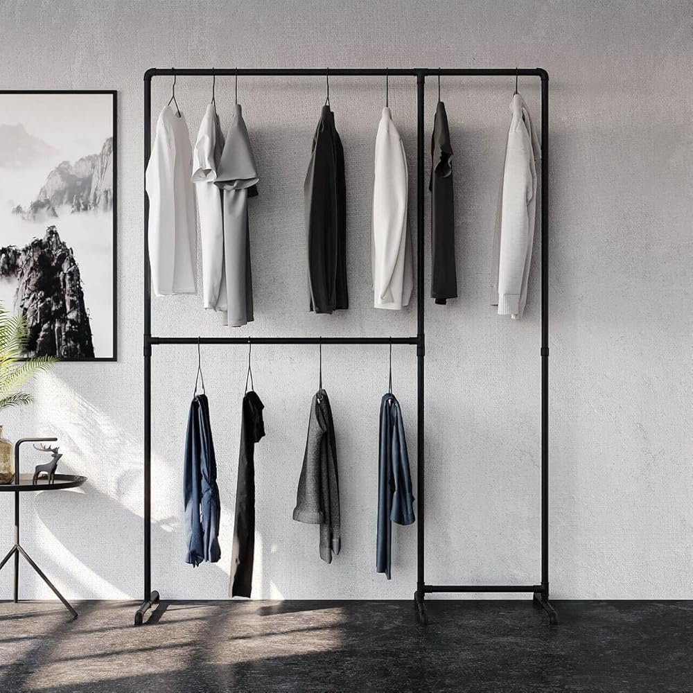 freestanding Clothes Rail in Industrial loft Design - LAS II - Wardrobe for Walk-in Closet Wall I Bedroom Clothes Rack Made of Black Sturdy Tubes