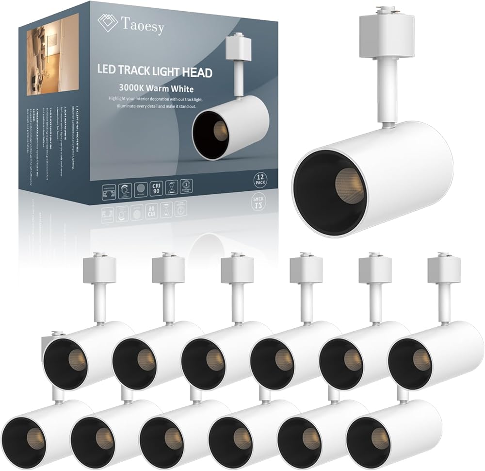 3000K LED Track Lighting Heads H Type Track Light Heads, Dimmable Bright Rail Ceiling Spotlight Fixtures Accent Art Task, Flicker Free CRI90+ 45° Wide Beam Angle-12 Pack