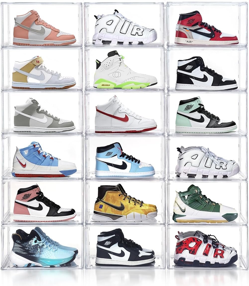 SIMPLGIRL Clear Shoe Boxes Stackable 12 Pack Shoe Storage for Sneakerheads, Front Opening Shoe Organizer, Magnetic Door, Strong and Sturdy Fit for Large Size Shoes