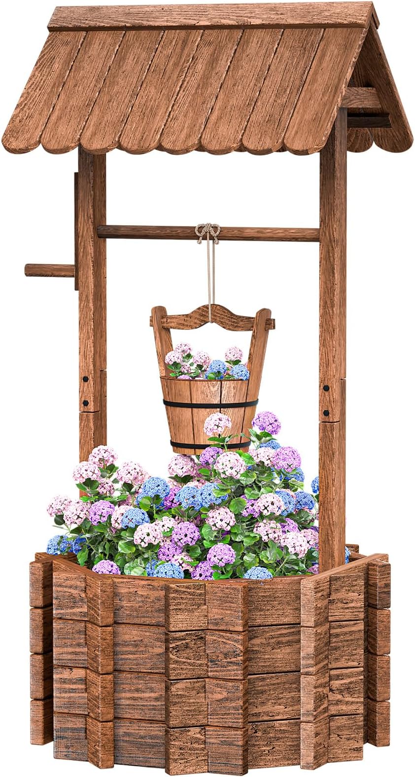 Amopatio Large Wishing Well for Outside, Wooden Wishing Well with Adjustable Hanging Bucket, Rustic Flower Planter Garden Patio Lawn Home Decor