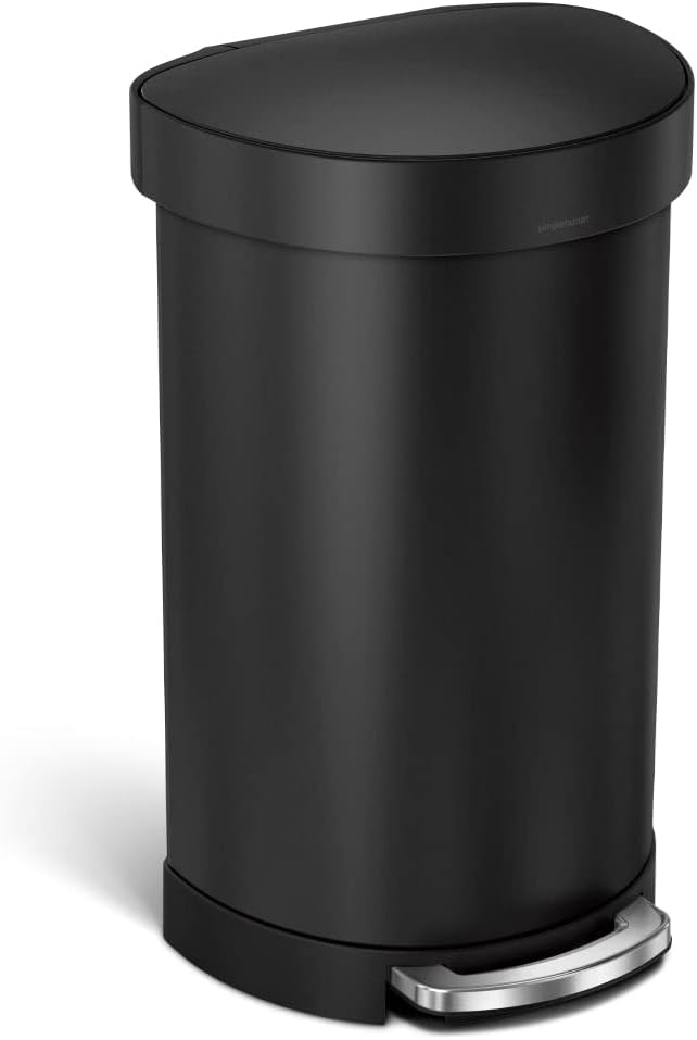 simplehuman 45 Liter Semi-Round Hands-Free Kitchen Step Trash Can with Soft-Close Lid, Matte Black