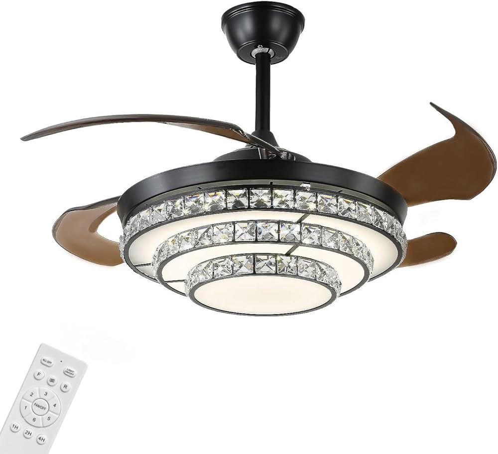 Ceiling Fan with Lights Remote Control,Retractable 48 Inch Modern Fandelier Ceiling Fans for Bedroom, Living Room, LED 3 Color, Quiet DC Motor, 6 Speeds, Brush Nickel