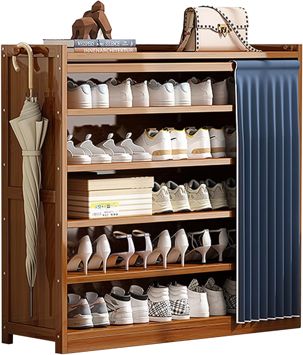 Closet Shoe Storage Cabinet with Curtain Freestanding Shoe Rack Organizer for Entryway and Hallway Floor, Dustproof Storage, for Closet Hallway Living Room Heels, Boots, Slippers (Color : A, Size :