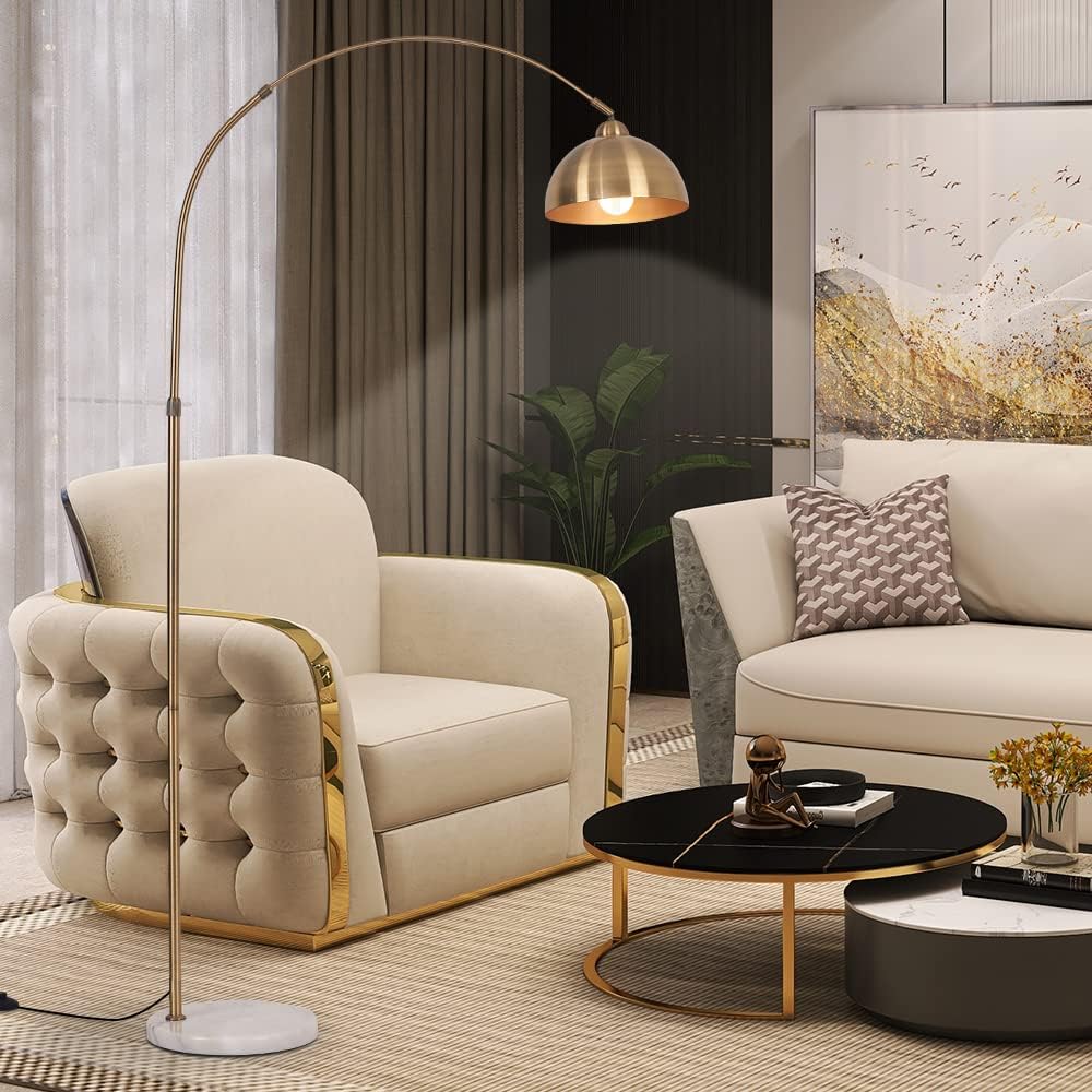 Modern 72in Arc floor lamps,Task Light, metal dome lampshade, marble base, adjustable high standing lighting, suitable for reading corner lamp in living room, study, office, hotel, and bedroom (Gold)