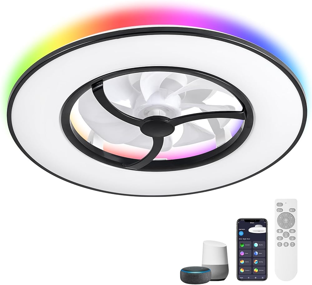 Orison Low Profile Ceiling Fan with Lights- 23 in Smart Ceiling Fans with Alexa/Google Assistant/App Control Color Changing LED-RGB Back Ambient Light for Living Room Bedroom