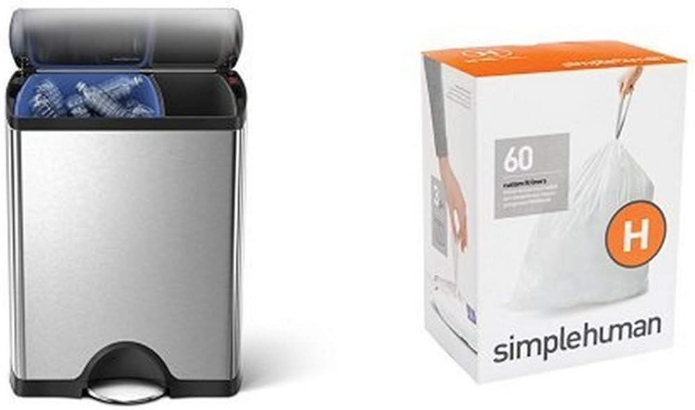 simplehuman 46 litre dual compartment rectangular step can fingerprint-proof brushed stainless steel + code H 60 pack liners