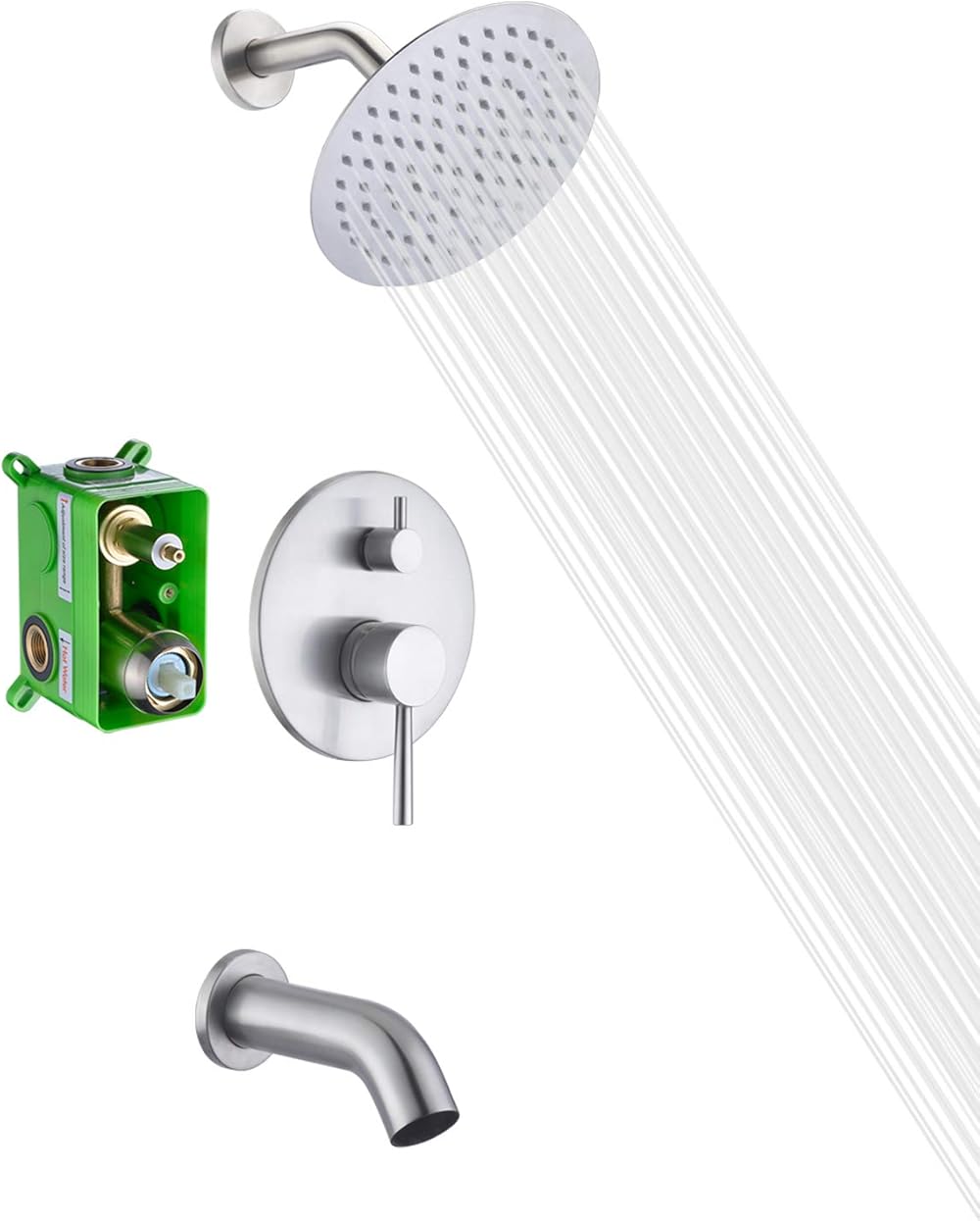 Tub Shower Faucet Set Brushed Nickel,High Flow Waterfall Tub Spout and High Pressure Rain Shower,SUMERAIN