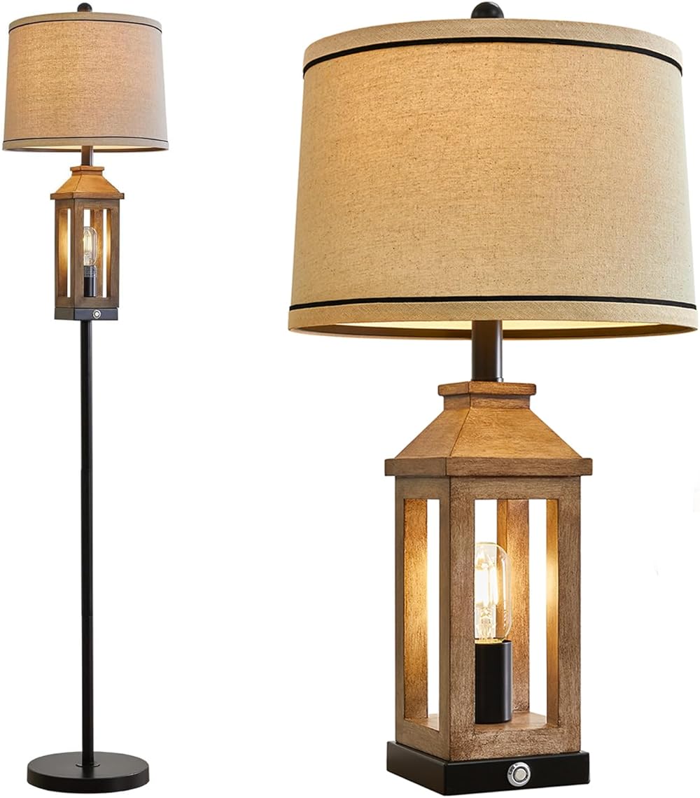 23.75" Table Lamps Set of Two with USB A+C Charging Ports & 63" Floor Lamp for Living Room Bedside